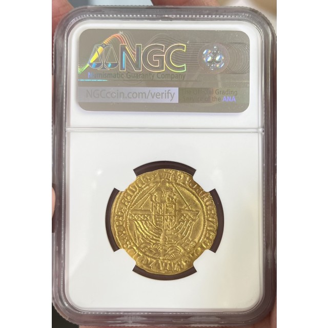 1544年ヘンリー8世エンジェル金貨AU58になります。